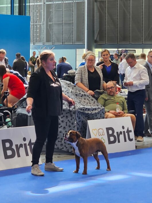 Am 12.04.2025 fand in Brünn /Tschechien die größte Europäische Show statt. Unter dem stärksten Teilnehmerfeld mit, unserer Meinung nach, den qualitativ besten Hunden, erreichten wir mit Chico in der Championklasse Rüden ein V2, ResCAC und mit Fenja in der Championklasse Hündinnen ein V1, CAC.